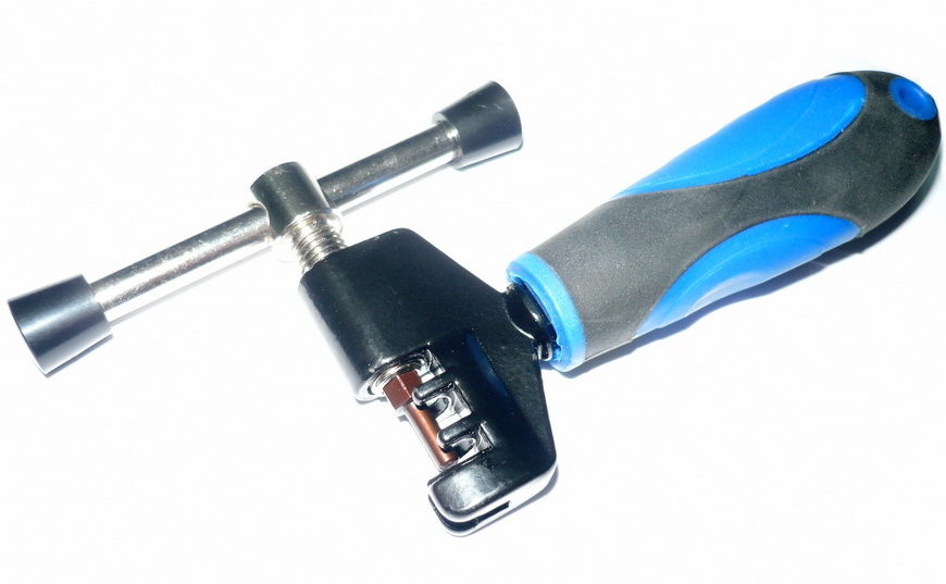 Alat lain dari BIKE HAND. Peras dilengkapi dengan penekanan untuk fiksasi yang nyaman. Cocok untuk rantai dari pabrikan mana pun. Harganya masuk akal, tetapi bisa sulit digunakan. Pertama, kehadiran permainan di batang pelepas (distorsi dimungkinkan saat memasang pin). Kedua, kualitas logam yang rendah.Banyak pembeli berpendapat bahwa pabrikan menggunakan paduan yang lebih murah daripada baja yang dikeraskan. Secara umum, menurut pengguna STG, "YC-329" adalah alat yang bagus untuk harganya, oleh karena itu termasuk dalam ulasan.