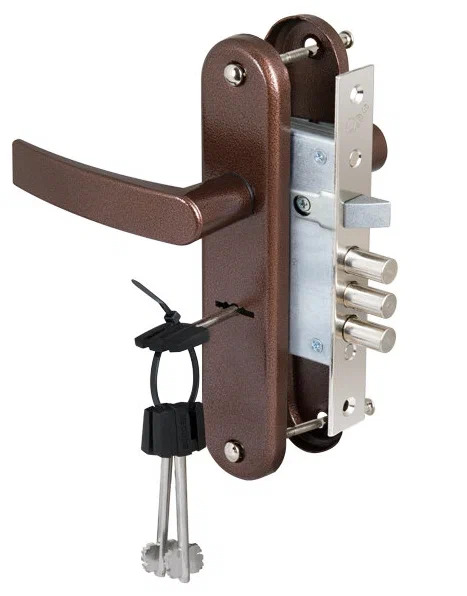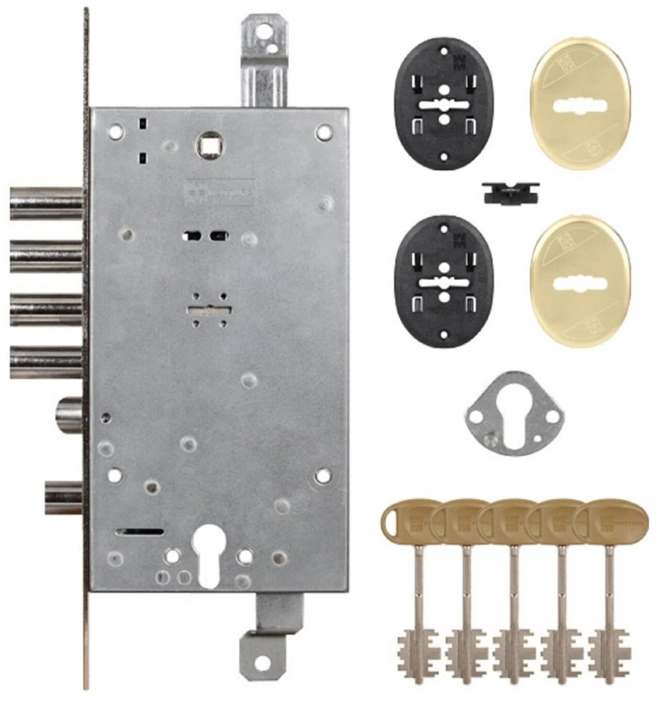 Mekanisme penguncian ini tidak bisa disebut anggaran, harga kunci untuk pintu masuk logam lebih dari tiga puluh ribu. Pabrikan menjamin bahwa kunci tidak dapat ditindaklanjuti dengan sangat cepat. Mekanisme penguncian terbuat dari tungsten, sehingga meningkatkan kekerasan dan ketahanan aus. Lima kunci disertakan.