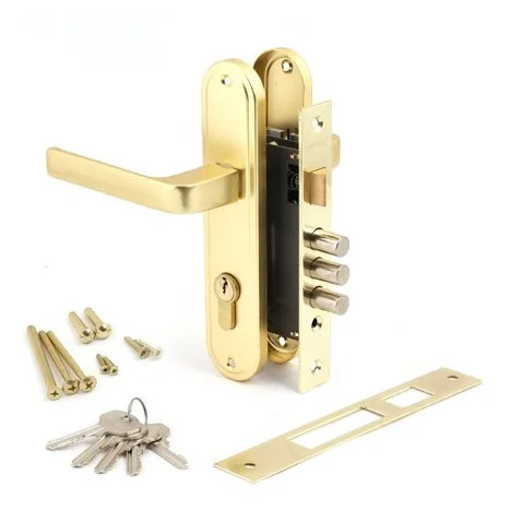 Kunci untuk pintu masuk besi dengan pegangan ini memiliki tipe kunci tuas. Di sisi pemasangan, cocok untuk pintu kiri dan kanan. Mekanismenya terbuat dari baja, kit ini dilengkapi dengan tiga kunci dan pegangan.