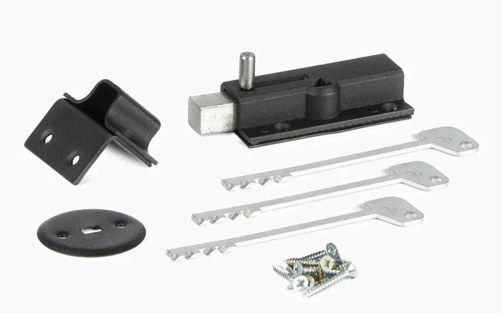 Mekanisme penguncian ini dianggap tidak dapat diandalkan, oleh karena itu cocok untuk ruangan yang dapat diakses oleh banyak orang. Ini juga dapat digunakan dalam kombinasi dengan mekanisme yang lebih andal. Kunci tidak perlu diputar, kunci terbuka saat digeser ke depan.