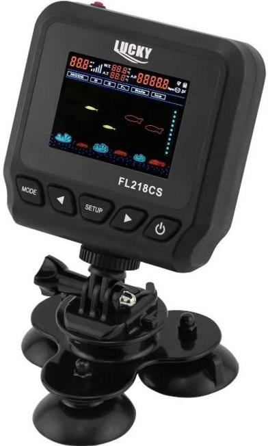 Model ini, dalam hal kemampuannya, sepenuhnya sesuai dengan fungsionalitas perangkat Lucky FL218CS, tetapi ada sedikit perubahan: panjang kabel transduser adalah 8 meter, dan Anda juga dapat memperbesar gambar.