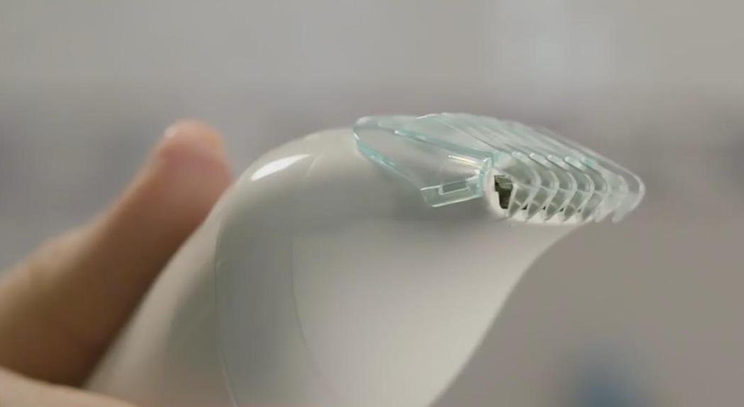 Model ini hadir dengan tujuh aksesoris. Berbeda dengan dua model sebelumnya, model ini tidak memiliki kepala pencukur, tetapi ada nozzle untuk pengelupasan tubuh.