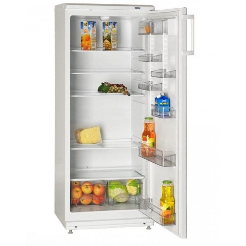 Kulkas satu ruang artikel 5810-62 putih dengan pegangan di bagian atas. Desain biasa. Daftar kecil fitur.