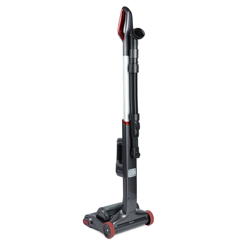 Penyedot debu nirkabel dua-dalam-satu - dapat digunakan dalam tata letak vertikal, untuk membersihkan ruangan yang luas, serta dalam versi manual yang ringkas untuk membersihkan tempat-tempat yang sulit dijangkau. Sikat yang nyaman cocok untuk permukaan apa pun - baik untuk lantai yang halus, maupun untuk penutup karpet. Perangkat ini tanpa kantong untuk mengumpulkan debu, dilengkapi dengan filter halus, serta baterai yang cukup kuat yang memungkinkan Anda bekerja secara mandiri hingga 40 menit. Pegangan penyedot debu dilengkapi dengan tombol penyesuaian daya, dan sikat memiliki lampu latar LED. Termasuk nozel lantai dan karpet, sikat serat dan alat celah. Berat penyedot debu adalah 2,8 kg. Biaya rata-rata adalah 9.330 rubel.