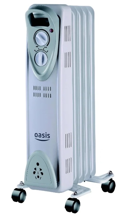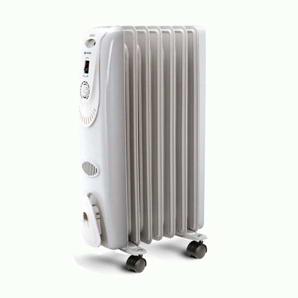 Pemanas oli yang bagus dan berkualitas tinggi dengan 7 bagian. Berjalan dengan daya 220W biasa. Ada beberapa mode operasi - 600, 900 atau 1500 watt. Artinya, Anda dapat dengan cepat dan mudah memanaskan satu kamar, ruang tamu kecil, atau apartemen dua kamar yang lengkap. Penampilan pemanas yang tidak standar akan memungkinkan untuk pertama kalinya menggunakan jenis teknik ini sebagai alat dekorasi. Ada gulungan kecil untuk menyimpan kabel panjang.