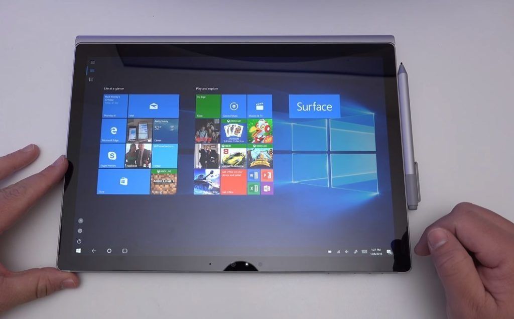 Ciri khas produk Microsoft adalah layar IPS. Layar sentuh rasio aspek 3:2 sangat ideal untuk gambar, dokumen teks, dan penelusuran web, tetapi video dan game dapat terdistorsi. Pabrikan lebih memilih layar glossy dengan lapisan anti-reflektif, tetapi visibilitas berkurang di bawah sinar matahari.