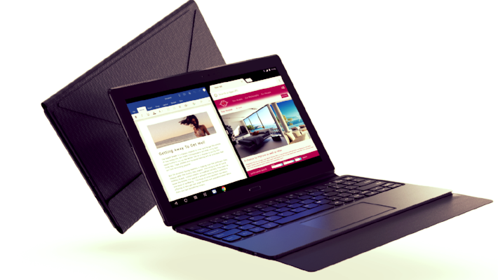 Model yang sangat inovatif dan produktif, diasah untuk melakukan berbagai fungsi. Saat dibuka, tablet ini terlihat seperti laptop kecil (display with keyboard) dan diposisikan sebagai “transforming laptop”.