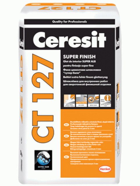 Ini adalah hasil akhir yang berkualitas tinggi.Bersama dengan Vetonit, ini adalah salah satu dempul terbaik. Dengan bantuan dempul merek ini, Anda bisa mendapatkan permukaan dengan kualitas terbaik. Dijual siap pakai. Untuk 28 kg harganya 1400 rubel.