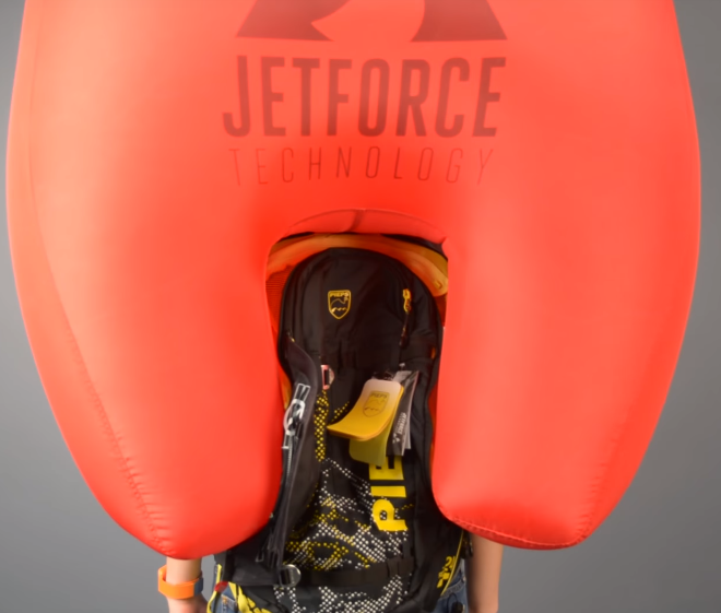 Ransel Pieps Jetforce Tour Rider dengan airbag yang terpasang