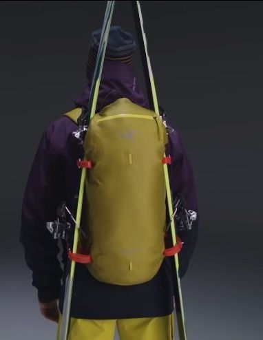 Contoh pemasangan alat ski di salah satu dari beberapa cara di ransel Arcteryx Alpha SK