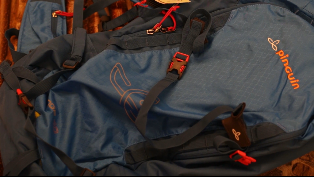 Hidrasi dapat dilampirkan ke salah satu tali yang dilengkapi dengan kantong. Helm dipasang dengan jaring di bagian luar ransel.