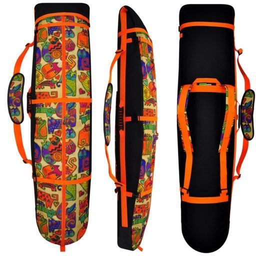 Tas peralatan snowboarder menampung semua barang yang diperlukan untuk bermain ski. Ini memiliki warna-warna cerah dengan pola abstrak.Fitur tas adalah kemampuan untuk menyesuaikannya dengan ukuran papan luncur salju. Modelnya terbuat dari bahan berkualitas tinggi dan tidak menimbulkan ketidaknyamanan selama pengoperasian. Ada sisipan karet yang tahan lama di bagian bawah kasing, yang memperkuatnya; punggung lembut dalam tiga lapisan; tali yang dapat disesuaikan; dimungkinkan untuk membawa amunisi di satu bahu, karena ada sabuk yang dapat dilepas dengan bantalan bahu. Fiksasi peralatan dilakukan oleh skrup melintang dengan fastexes.