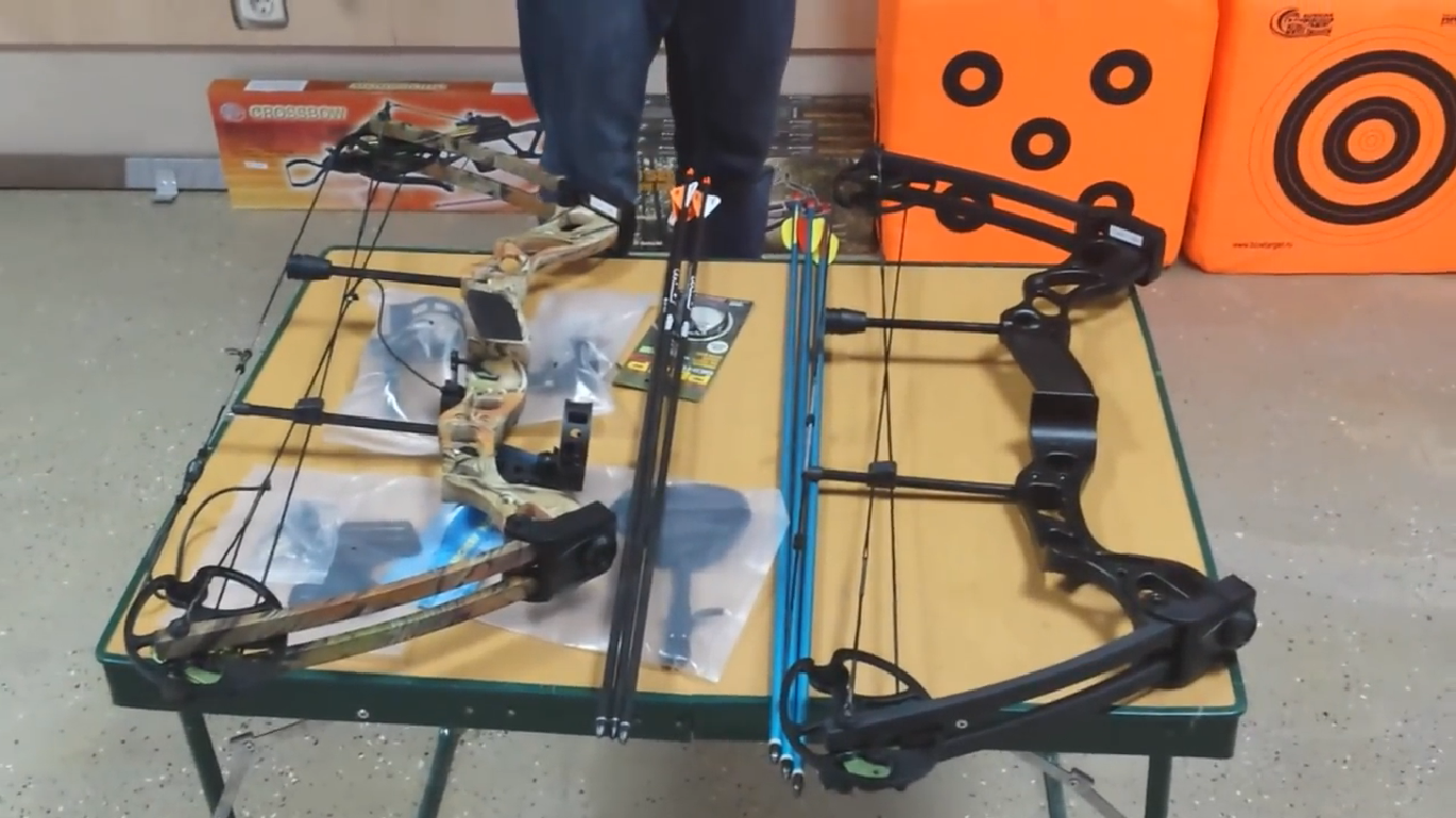 Kit ini mencakup panah, 2 klem logam, disk kertas, tempat anak panah untuk dua anak panah, pelindung jari, dudukan, pengikat tali busur, penglihatan, dan busur itu sendiri. Harganya sekitar 5500 rubel.