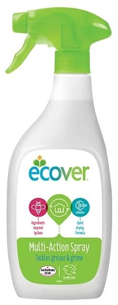 Pembersih ini efektif melawan kotoran pada semua jenis permukaan, meninggalkan aroma segar setelah digunakan. Ecover Multi-Action Spray tidak perlu dibilas karena tidak meninggalkan goresan pada permukaan kaca. Pabrikan mencatat bahwa produk ini sepenuhnya aman tidak hanya untuk manusia, karena menghirup zat ini tidak membahayakan kesehatan, tetapi juga untuk lingkungan. Ini didasarkan pada surfaktan nabati. Volume semprotan adalah 500 ml.