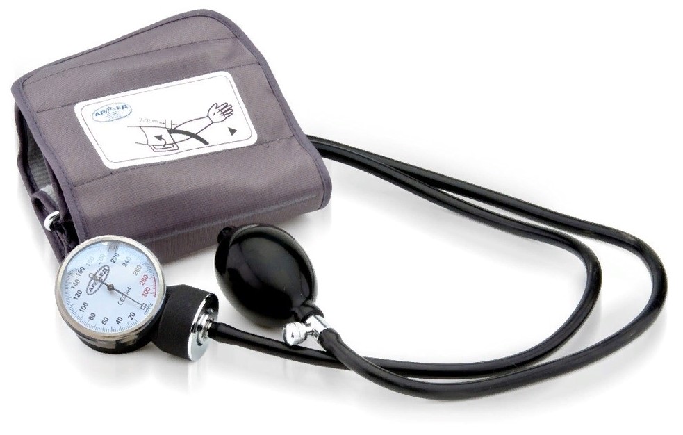 Sphygmomanometer yang benar-benar klasik, yang memungkinkan untuk mengukur tekanan untuk orang dengan volume bahu yang berbeda, untuk operasi otonom dari baterai atau dari listrik, yang adaptornya disertakan dalam kit.