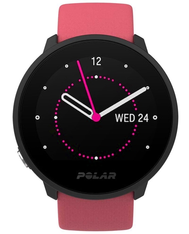 Polar A360 memiliki tampilan yang rapi. Dimungkinkan untuk mengubah warna tali silikon. Ada 5 total: hitam, putih, pink, hijau dan biru.