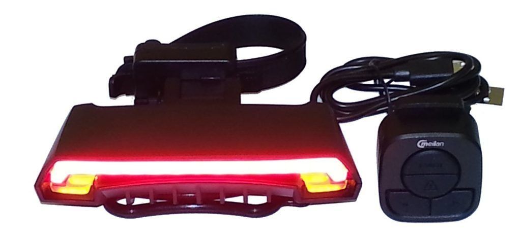 Lampu sepeda laser buatan China dengan desain stylish dan dilengkapi lampu sein. Ini memiliki LED terang yang dengan jelas mengidentifikasi kendaraan terlepas dari cuaca. Perangkat ini dipasang di bagian belakang sepeda. Ini dapat dioperasikan pada suhu dari -20 hingga +60 derajat. Kisaran sinar adalah 40 meter, jangkauan sinar laser adalah 5 meter. Kit ini mencakup remote control nirkabel yang dipasang di roda kemudi. Sumber listriknya adalah baterai isi ulang. Harga rata-rata adalah 2.474 rubel.