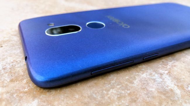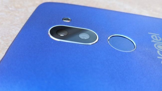Tepat di bawah lensa pada panel belakang terdapat pemindai sidik jari, yang menurut beberapa pengguna, merespons sentuhan sedikit lebih lambat daripada perangkat lain yang harganya serupa. Di bawah sensor adalah logo Alcatel yang familiar.