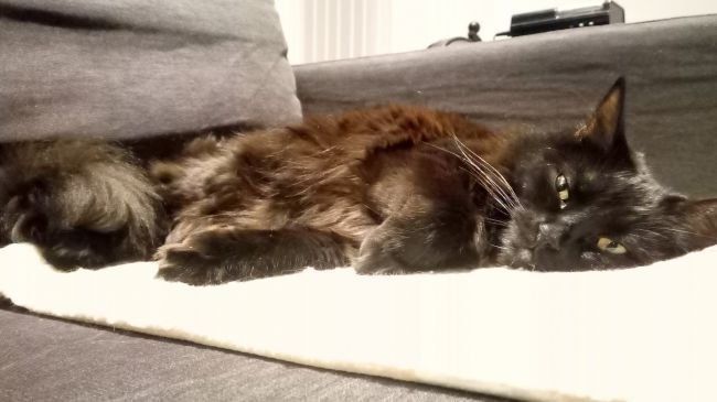 Kucing hitam selalu menjadi baik.Sayangnya, sebagian besar bulu dalam gambar sangat kabur (tidak secara harfiah) dan tidak sehalus dan secerah aslinya.