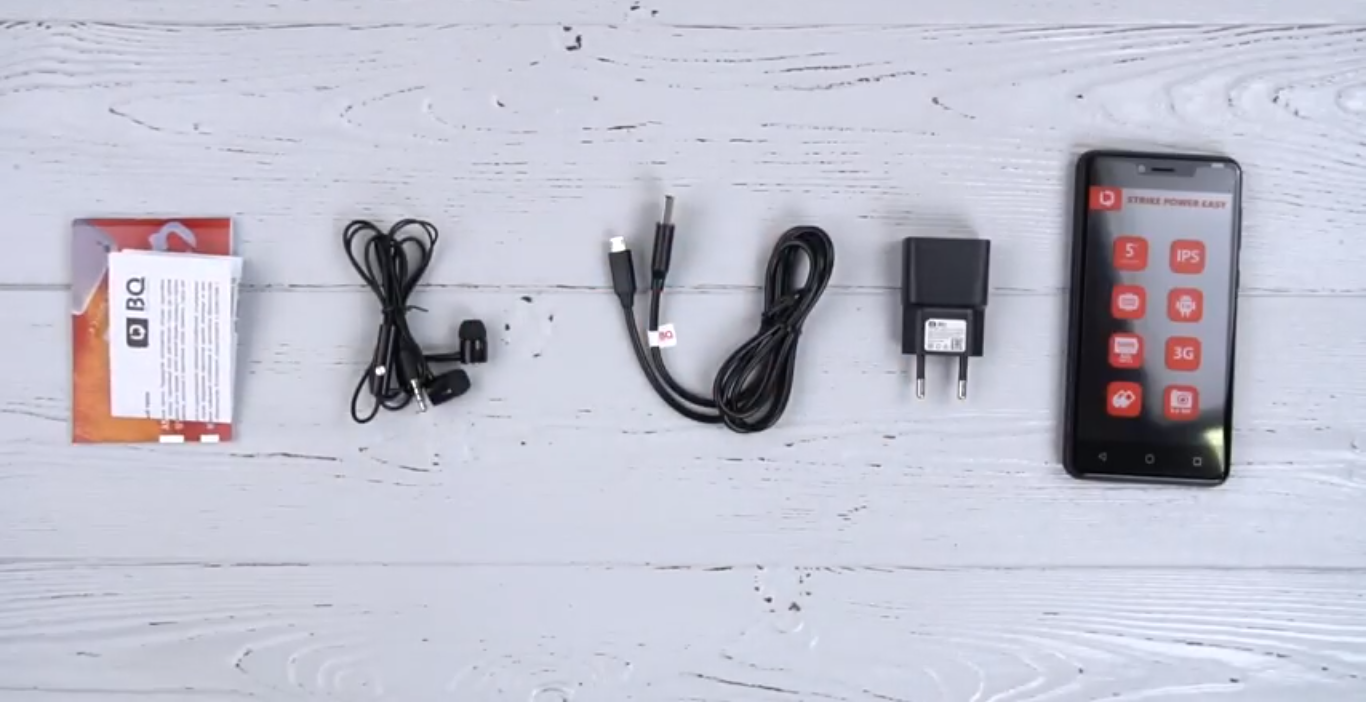 BQ-5058 Strike Power Easy berada dalam kotak kecil tapi cukup lapang. Karena ini adalah opsi anggaran, peralatan tidak "berkilau dengan cemerlang". Pengisi daya Cina lainnya, headset, dan kabel micro-USB, bersama dengan kartu garansi dan instruksi.