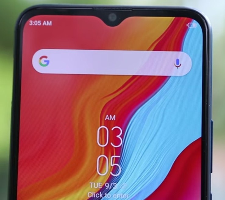 Kamera depan dipasang di bingkai atas dalam notch waterdrop, ada juga speaker, sensor cahaya sekitar, sensor jarak, dan lampu kilat LED yang meningkatkan kualitas selfie dalam cahaya rendah.