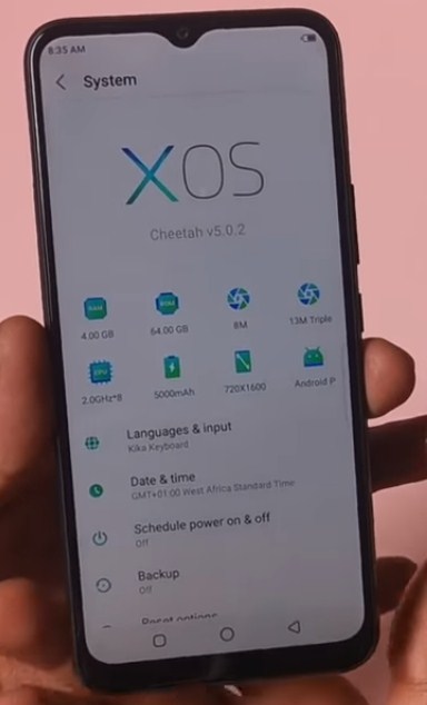 | Antarmuka | Android 9.0 Pie, Firmware XOS 5.0 |