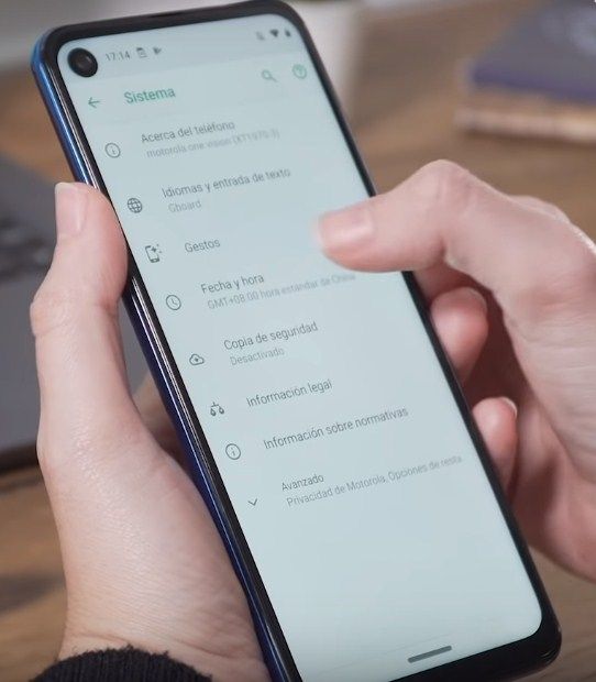 Motorola One Vision tersedia dalam dua warna - coklat dan biru.Pilihan warna yang agak sederhana dapat dimaafkan, berkat solusi menarik dalam bentuk penggelapan warna secara bertahap ke bagian tengah panel, yang memungkinkan Anda untuk meningkatkan kedalaman dan keindahan biru atau coklat.