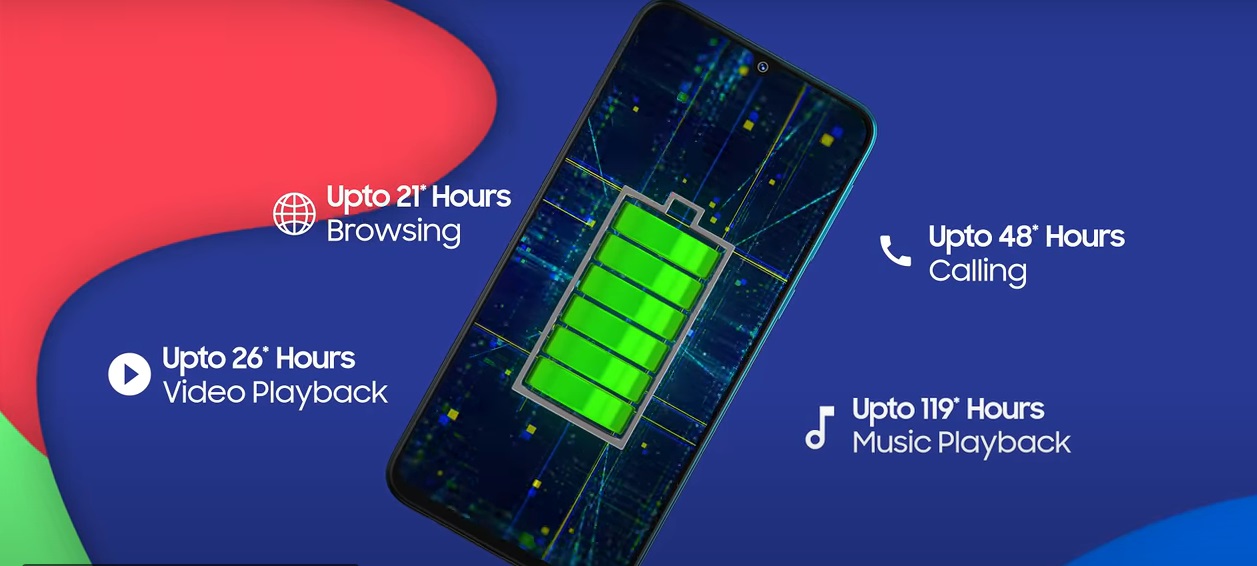 Baterai lithium-ion yang andal berkapasitas 6000 mAh menjadi salah satu keunggulan utama Galaxy F41. Baterai cukup untuk percakapan terus menerus selama 48 jam. Ini juga merupakan pilihan bagus untuk game aktif. Tetapi daya keluaran adaptor rendah, hanya 5 V / 3 A. Gadget ini mendukung nano dual sim (faktor bentuk 4FF sejak 2012), dimensinya 12,3 x 8,8 x 0,67, keduanya aktif dalam mode operasi, dan ketika berbicara pada satu kartu, yang lain dinonaktifkan.