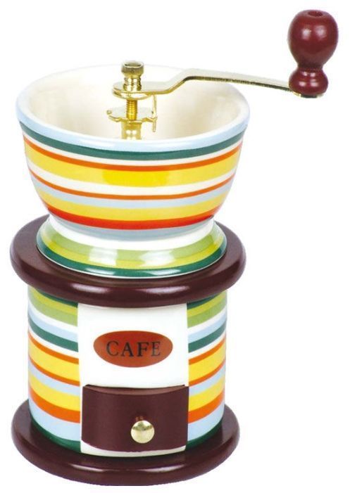 Mesin retro klasik di mana kopi digiling menggunakan batu giling. Biji-bijian dituangkan ke dalam wadah, ditutup, dan untuk menggilingnya menjadi bubuk, pemilik harus memutar pegangan perangkat itu sendiri. Keunggulannya antara lain biaya yang sangat rendah dan tidak ada biaya listrik sama sekali, desain, kemudahan penyimpanan dan transportasi, kemampuan untuk digunakan di mana saja (bahkan di alam). Kerugiannya adalah kebutuhan untuk melakukan semuanya secara manual dan biasanya volume kecil.