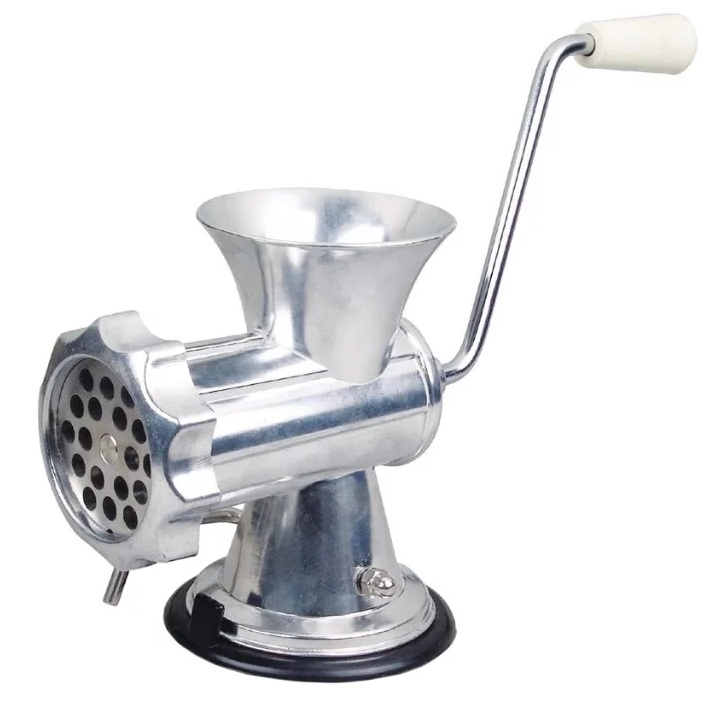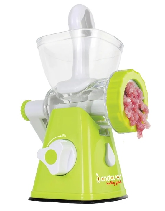 Perkembangan modern stainless steel dan plastik food grade berkekuatan tinggi dirancang untuk berbagai jenis daging, ikan, sayuran, buah-buahan dan bahkan kacang-kacangan. Fiksasi pada permukaan dilakukan karena bagian bawah karet, menciptakan ruang hampa antara itu dan meja. Mesin mudah dibongkar dan dirakit. Karena bagian transparan, Anda dapat sepenuhnya mengontrol proses memasak.