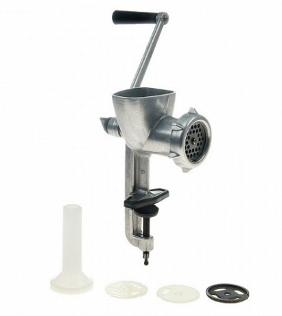 Kategori ini mencakup model klasik penggunaan manual. Keuntungan utama mereka adalah biaya rendah dan umur panjang. Terlepas dari kenyataan bahwa instalasi listrik sangat diminati oleh pembeli, ada orang yang masih lebih suka penggiling daging manual. Karena mereka tidak memerlukan catu daya, mereka tidak menimbulkan kebisingan selama proses kerja, dan mereka juga memungkinkan Anda untuk meninggalkan peralatan tanpa pengawasan untuk waktu yang lama jika Anda harus segera pergi.