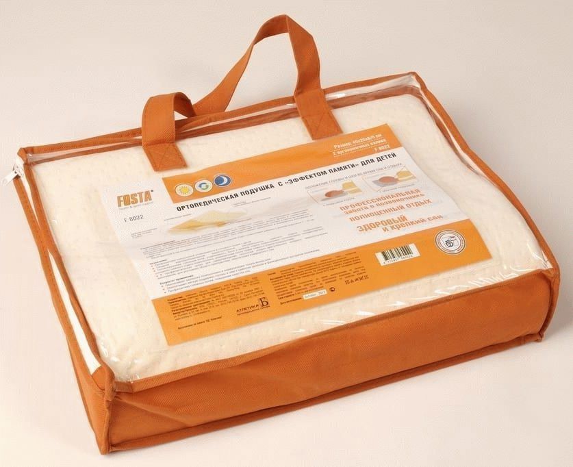 Merawat kesehatan anak Anda, Anda harus memperhatikan bantal, yang akan memberinya tidur yang tenang dan nyenyak. Bantal Fosta sangat cocok untuk pertumbuhan tubuh. Bentuknya dipikirkan secara anatomis, terdiri dari dua rol, yang memungkinkan Anda menopang kepala dan melindungi tulang belakang leher. Pengisi - busa poliuretan fleksibel. Harga rata-rata bantal adalah 1600 rubel.