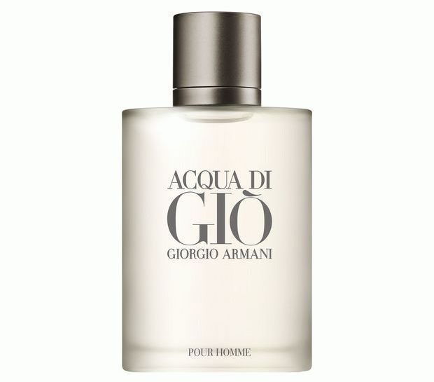 Acqua di Gio oleh Giorgio Armani diciptakan oleh Alberto Morillas. Kombinasi aroma yang rumit di Acqua di Gio mengingatkan pada pantai laut. Parfum ini mengandung aroma jeruk, bergamot, melati, neroli, cyclamen, mignonette, pala, ketumbar, freesia, violet, peach, mawar, eceng gondok, rosemary, nilam, lumut, cedar, musk dan amber.
