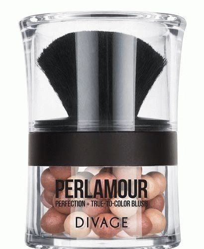 Blush dari produsen Divage dibuat dalam bentuk bola, mereka menjamin kilau mutiara, yang membuat wajah sedikit berkilau dan membuatnya menarik.