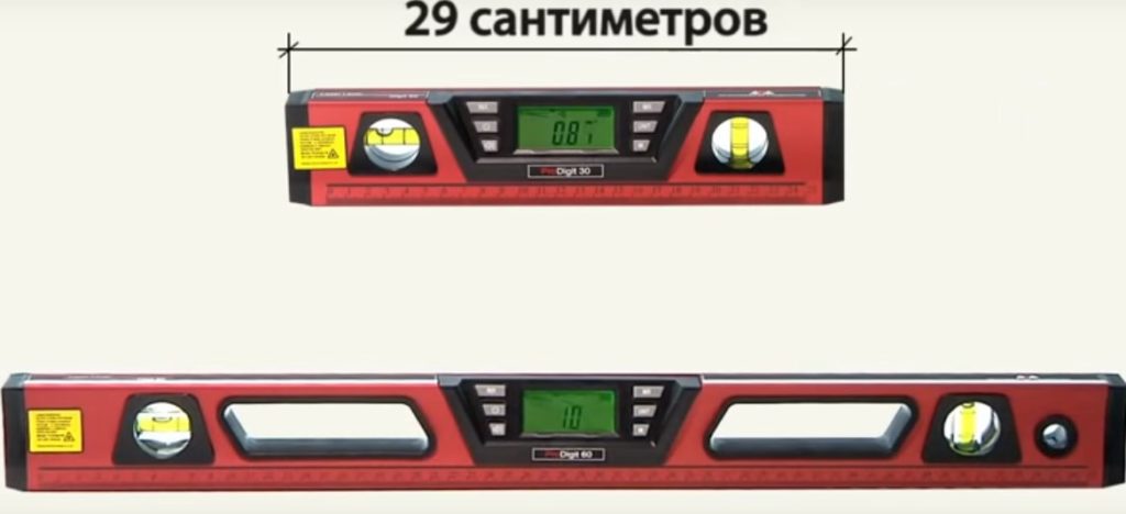 Tubuh perangkat terbuat dari profil aluminium berkekuatan tinggi. Penggaris yang diperluas yang disertakan dalam paket memungkinkan Anda melakukan pengukuran di tempat-tempat dengan akses yang buruk.