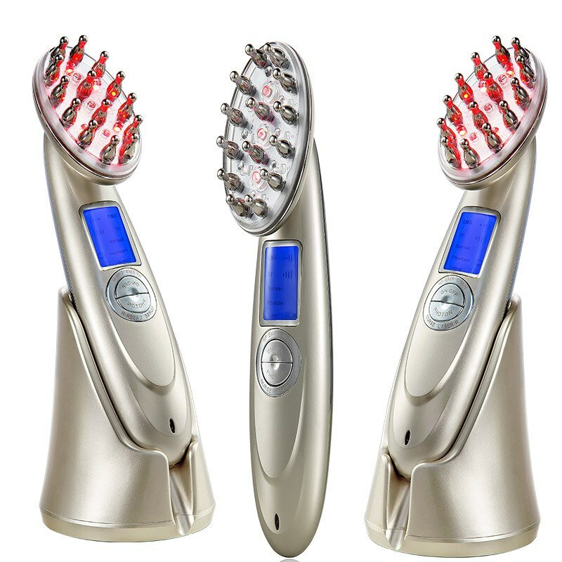 La combinazione di tecnologia laser e massaggio vibratorio agisce sulla qualità del cuoio capelluto e dei capelli in questo dispositivo.