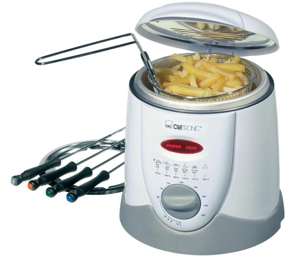 Il modello si distingue per l'elevata qualità costruttiva e una scheda di garanzia di 2 anni. Il contenitore dell'olio contiene 1 litro di liquido. Dopo il riscaldamento, il dispositivo mantiene la temperatura fino a quando il piatto non è completamente cotto. Potenza di riscaldamento 100 W. Il controllo è meccanico, c'è un indicatore che ti avvisa quando il piatto è pronto. Inoltre sul dispositivo sono presenti appositi piedini in gomma che non scivolano sulla superficie. La presenza di una finestra di osservazione consentirà di osservare il processo di cottura.