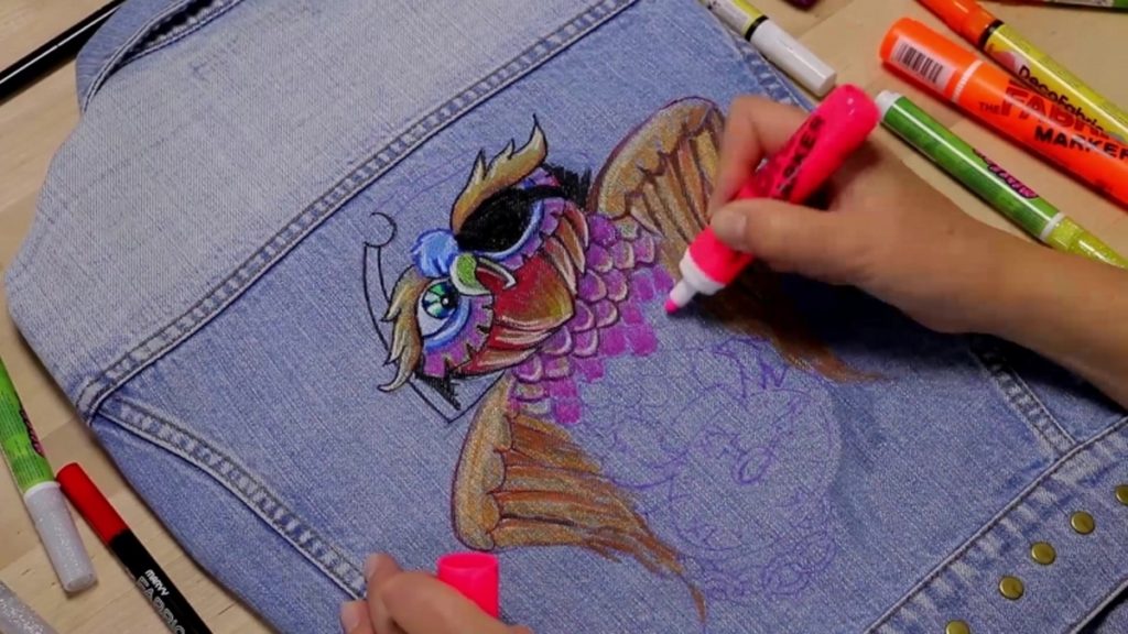 L'inchiostro per pennarelli indelebili non sempre si asciugherà abbastanza da attaccarsi al tessuto. Per ottenere il massimo effetto, il modello deve essere stirato con un ferro caldo (senza vapore) o trattato con un asciugacapelli da sarto. Se è stato commesso un errore nel lavoro, prima della fine del periodo di asciugatura, puoi lavare l'intera cosa o una sezione separata, rifare il disegno o apportare correzioni e correggere il nuovo risultato con un ferro da stiro. Gli articoli dipinti con un pennarello permanente devono essere lavati a bassa temperatura (da +40 a +50 gradi Celsius) senza l'uso di candeggina aggressiva.