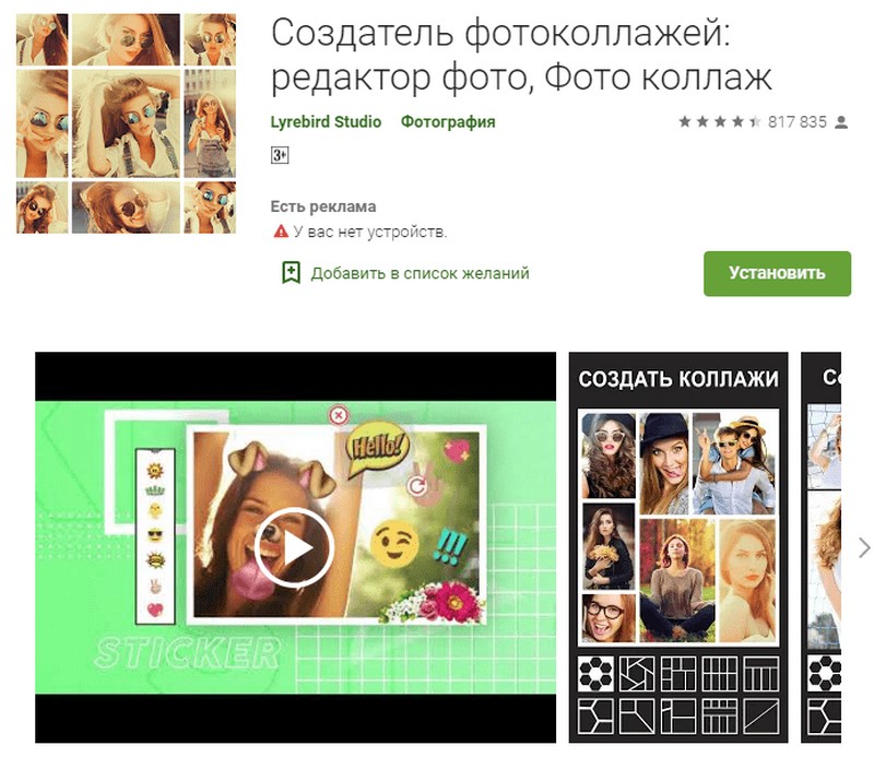 Questo editor di collage è sia il più popolare che il più potente, come dimostra la sua alta valutazione nel Google Store. Per un lavoro conveniente, all'utente vengono fornite molte cornici, adesivi, testi, caratteri e altri decori digitali. Separatamente, vale la pena menzionare la possibilità di autocreazione dei caratteri. Il programma è in grado di funzionare anche con i vecchi modelli di smartphone, mentre le sue funzionalità non diminuiscono affatto. L'applicazione è sviluppata per Android.
