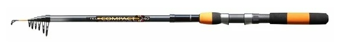 Questo dispositivo della classe Power (heavy) ha un'asta telescopica per 8 sezioni con anelli, il materiale del grezzo è composito. Appuntamento di filatura. Parametri numerici: 2,4 m - lunghezza massima, 0,42 m - minima; 30-60 g - prova.