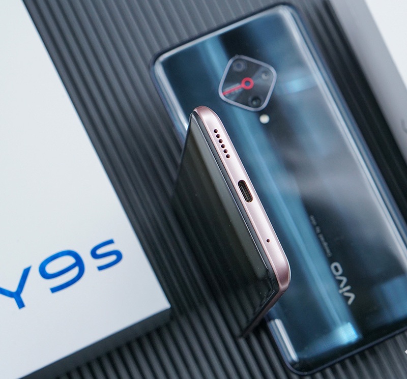 Vivo Y9s è disponibile in tre colori: Symphony of Clear Sky, Hazy Blue e Glass Black.Il vetro è utilizzato sul lato anteriore del dispositivo, mentre il retro è in plastica.