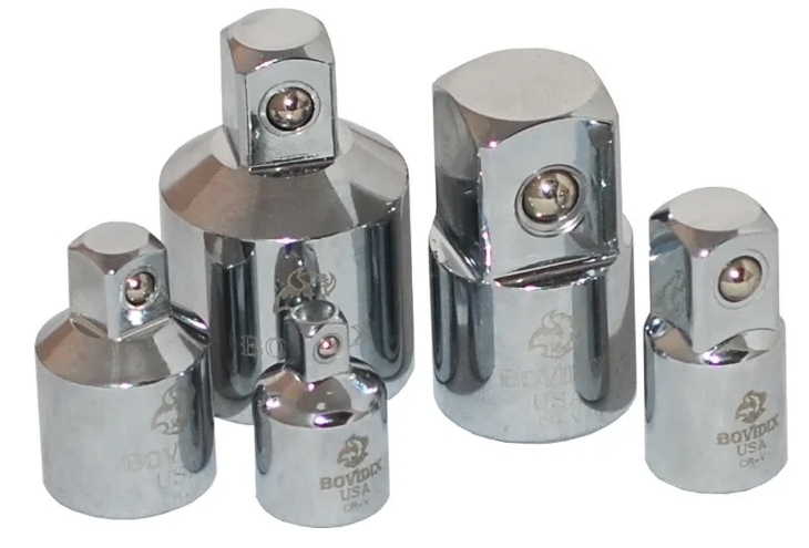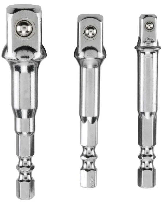 Gli adattatori consentono di utilizzare la stessa punta per più applicazioni facendo corrispondere la dimensione della presa con diversi tipi di chiavi. Un adattatore aiuterà a collegare un gambo quadrato da 1/4" a un cricchetto da 3/8". I prodotti sono venduti in un set o singolarmente, il loro costo varia da 300 a 6000 rubli.