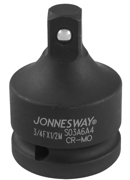 Il dispositivo JonnesWay ha un design per ugelli a impatto. Aiuta ad allineare 3/4″(F) - 1/2″(M) ed è uno strumento specializzato che può essere utilizzato per riparazioni o costruzioni a casa o in officina. Con JonnesWay, puoi aumentare in modo significativo la funzionalità di un utensile pneumatico con un profilo di adattamento quadrato da 1/2 pollice. Il prodotto è realizzato in acciaio al cromo-molibdeno affidabile e resistente all'usura, con uno strato protettivo fosfatato all'esterno.