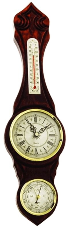 Un modello estremamente funzionale ed elegante che combina termometro, orologio e barografo. La cassa è realizzata in legno naturale, accuratamente lucidato e decorato con intagli. Il modello è stilizzato antico e si adatta perfettamente a qualsiasi interno classico. Il meccanismo di misurazione richiederà solo una calibrazione iniziale competente, dopo di che può funzionare per anni senza ulteriori impostazioni. La precisione della misurazione è garantita. Il prezzo consigliato per le catene di vendita al dettaglio è di 6400 rubli.