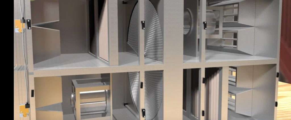 L'unità di trattamento aria è dotata di un riscaldatore elettrico e dispone di un sistema a piastre.