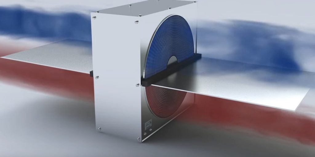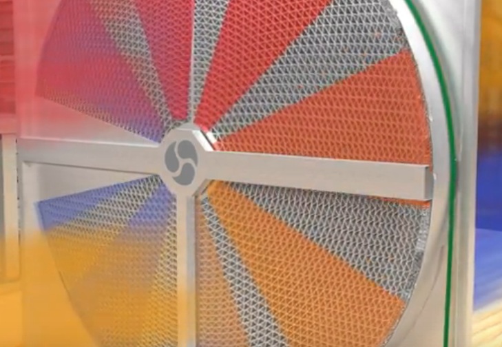 Il progetto dello scambio termico opera secondo il principio della rigenerazione termica.Durante la rotazione del tamburo, costituito da un sottile foglio di alluminio o rete, si verifica un accumulo di energia termica del flusso d'aria, che viene sottratta all'edificio. La massa del volume caldo si sposta gradualmente nel settore del flusso d'aria di mandata e rilascia energia termica. Aria fresca riscaldata entra nella stanza.