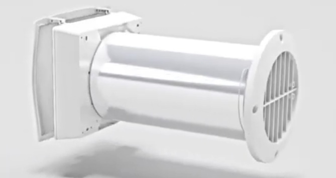 L'unità per la ventilazione del tipo di mandata e scarico, dotata di scambiatore di calore, è collegata tramite un condotto dell'aria circolare. Lo scambiatore di calore a piastre è integrato nell'alloggiamento.