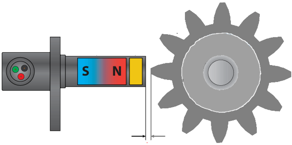 Il sensore è installato davanti a un disco ferromagnetico master con denti, che è fissato sul mozzo.