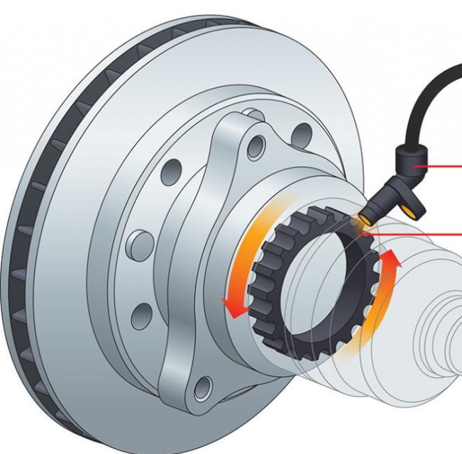 Quando si parcheggia in un campo magnetico costante, nel microcircuito viene generato un segnale di una certa forma, caratteristico della fase di riposo. Quando la ruota inizia a ruotare oltre l'elemento sensibile, i denti o i punti magnetizzati del disco di regolazione passano. Di conseguenza, il campo magnetico cambia e il microcircuito genera un nuovo segnale, che viene trasmesso digitalmente all'unità di controllo.
