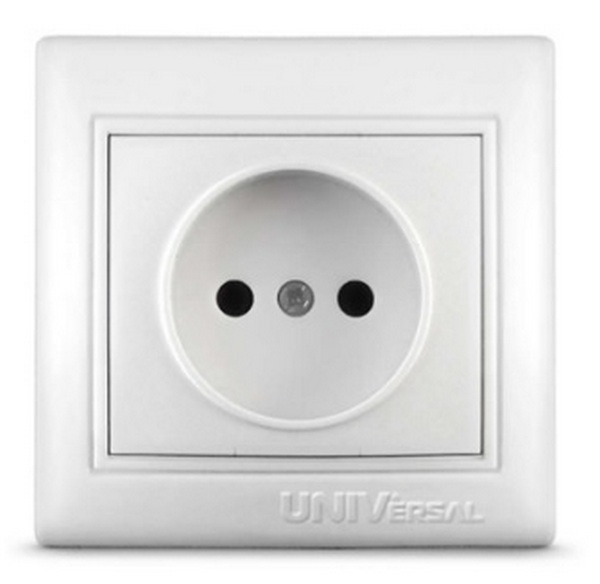 La versione economica di un dispositivo a presa singola integrato che non prevede la messa a terra è un chiaro svantaggio per le proprietà protettive. Le clip incluse nel kit forniscono un contatto affidabile per il cablaggio con una sezione trasversale di 0,1-2,5 millimetri quadrati. L'installazione viene eseguita secondo uno schema nascosto. Protezione da polvere e umidità: il 20°, standard. I contatti sono in ottone, il corpo è completamente in plastica. Il produttore dichiara 5000 cicli di accensione/spegnimento, il che è abbastanza per questa fascia di prezzo. Il prezzo al dettaglio consigliato è di 70 rubli.